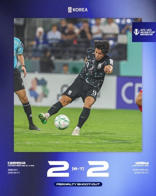 1月24日讯 本届U23亚洲杯季军战已经结束,越南U23常规时间2-2战平韩国U23,最终点球大战获胜。数据统计显示,这也是韩国U23首次负于越南U23。